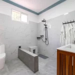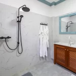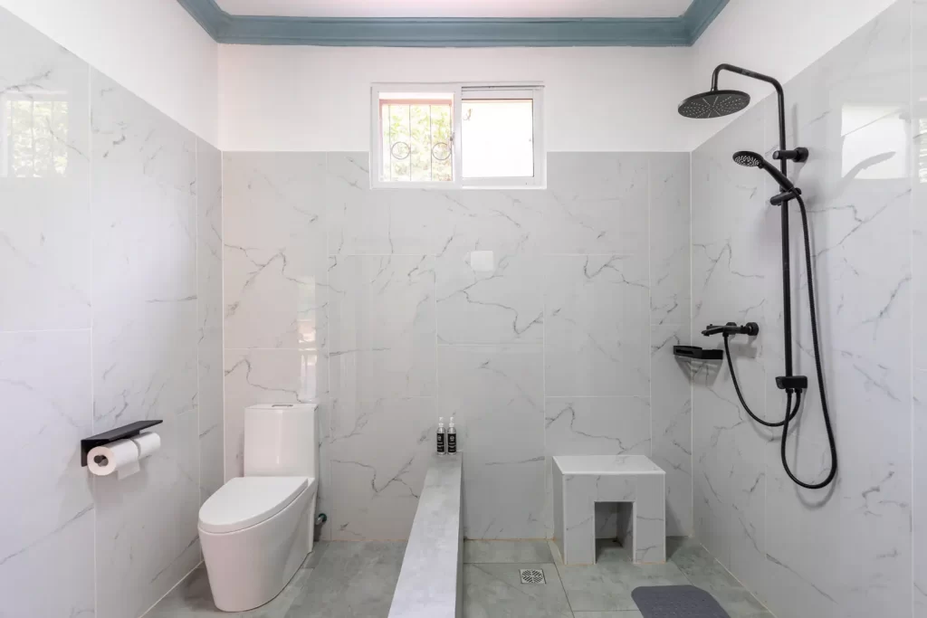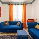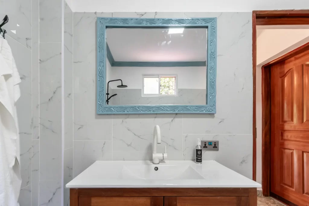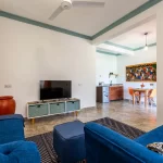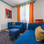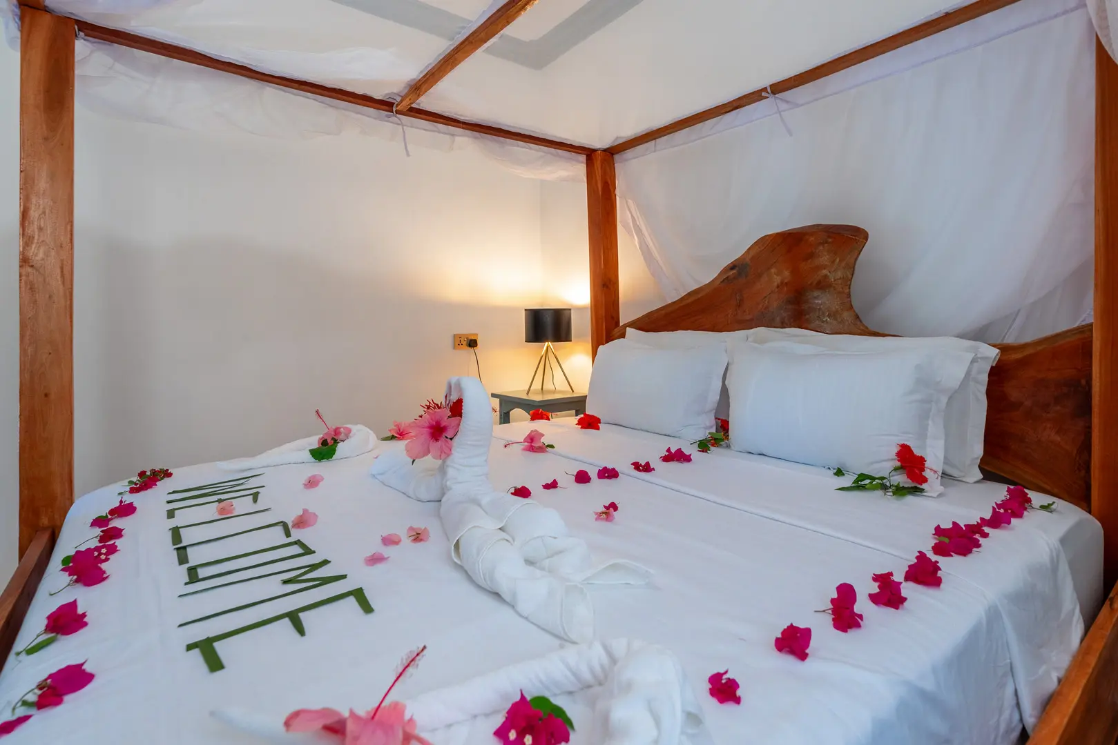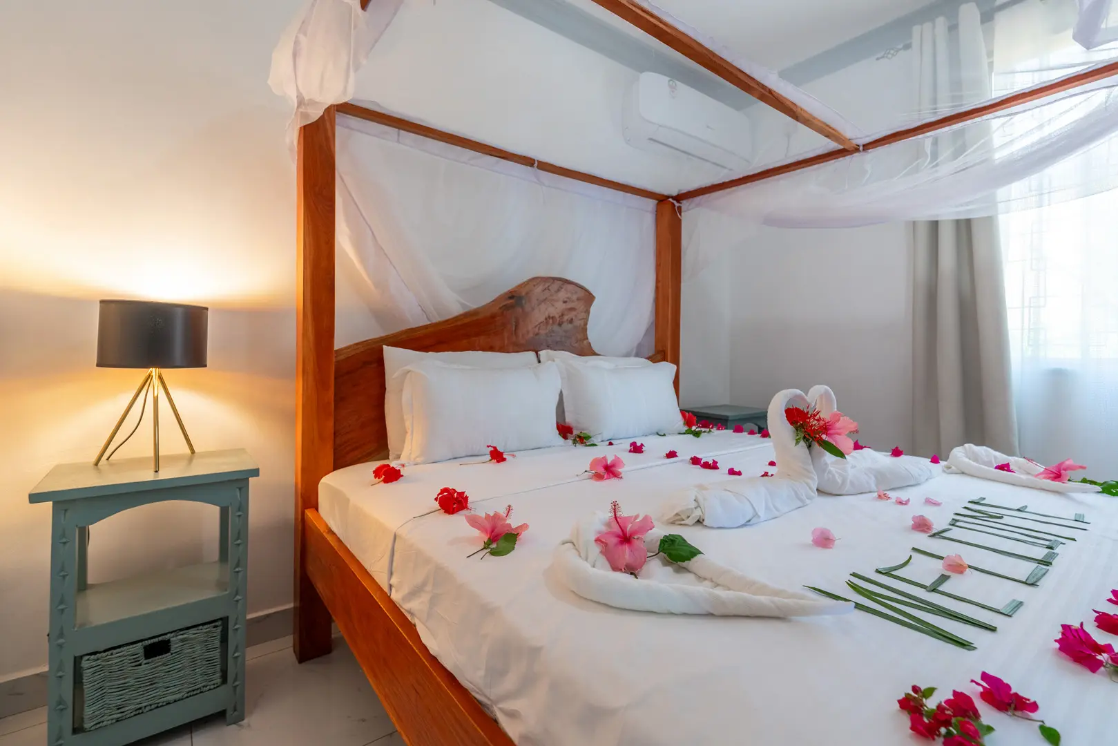 Babylon Gardens is a newly built resort in the heart of Diani Beach, Kenya. Eight spacious one bedroom villas spread out on a 4,000 sqm compound. Each villa has a porch, a sitting room with two sofas, large 43″ smart TV, a tea kitchen (kettle and fridge/freezer) and dining for two. The bedroom has a king size bed with high quality mattress, open wardrobes and air conditioner. The barrier-free bathroom has a walk-in shower. Babylon Gardens is suitable for singles and couples but not for kids under 12.