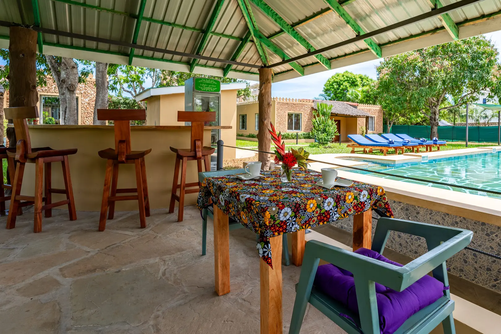 Breakfast and other meals are provided by our on-site chef who is specialized in traditional African and Coastal dishes. Our clients will enjoy the large swimming pool with bar & entertainment area.